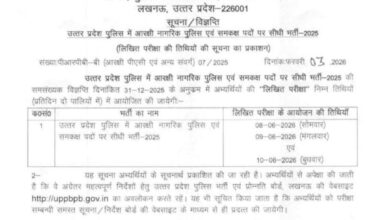 उत्तर प्रदेश पुलिस भर्ती एवं प्रोन्नति बोर्ड (UPPRPB) ने आरक्षी नागरिक पुलिस एवं समकक्ष पदों…