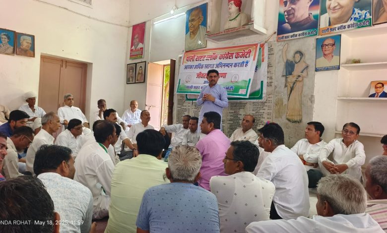 न्यू राजस्थान धरा न्यूज़ पिंटू आहूजा पाली राजस्थान प्रदेश कांग्रेस कमेटी के निर्देशानुसार पाली विधानसभा स्तरीय संविधान बचाओं रैली एवं विचार गोष्ठी का आयोजन पाली शहर ब्लॉक कांग्रेस अध्यक्ष जीवराज बोराणा व रोहट ब्लॉक कांग्रेस अध्यक्ष गिरधारीसिंह राजपुरोहित की अध्यक्षता एवं पाली विधानसभा प्रभारी हिमपाल सिंह देवल के मुख्य आतिथ्य में आयोजित हुई। कांग्रेस भवन में आयोजित संविधान बचाओं रैली एवं विचार गोष्ठी कार्यक्रम में उपस्थित काँग्रेसजनों को सम्बोधित करते हुए पाली विधानसभा प्रभारी हिमपाल सिंह देवल ने कहा कि वर्तमान स्थिति में जिस प्रकार से केंद्र की सरकार कानून को ताक पर रख कर विपक्षी दलों के साथ भेदभाव की नीति अपना कर केंद्रीय एजेंसियों का दुरुपयोग करके तानाशाही नीति को अपना रही है। कांग्रेस जिलाध्यक्ष अजीज दर्द ने कहा कि देश तानाशाही से नहीं संविधान से चलेगा और संविधान की रक्षा के लिए कांग्रेस का कार्यकर्ता जान भी दे देगा लेकिन इसका अपमान नहीं होने देगा । इस दौरान प्रदेश प्रतिनिधि महावीर सिंह सुकरलाई ने कहा की लोकतंत्र और न्याय के पक्ष में सभी एकजुट होकर ऐतिहासिक संदेश दें। वरिष्ठ नेता सुमेरसिंह राजपुरोहित ने भी सम्बोधित किया। इस दौरान सभी को संविधान की रक्षा का संकल्प दिलाया गया। इस अवसर पर पाली कांग्रेस कार्यकारी जिलाध्यक्ष प्रवीण कोठारी, प्रदेश सेवादल उपाध्यक्ष मोहन हटेला, कांग्रेस नेता जोगाराम सोलंकी, राजीव गांधी पंचायत राज प्रकोष्ठ जिलाध्यक्ष मदनसिंह जागरवाल, पूर्व ब्लॉक अध्यक्ष प्रकाश सांखला, सेवादल जिलाध्यक्ष प्रकाश चौधरी,एसी प्रकोष्ठ जिलाध्यक्ष रतन उद्देश, ओबीसी प्रकोष्ठ जिलाध्यक्ष गोविंद बंजारा, ताराचन्द चन्दनानी, शहर उपाध्यक्ष दिनेश दवे, ताराचन्द टांक, शमीम बानो खत्री, बाबू भाई कीर, अशोक कुलदीप, मण्डल अध्यक्ष गण, बाबू भाई गोरी, राजू सोलंकी, शकील अहमद नागोरी, अशोक गोड़, चेलाराम रारबड़ा, विनोद मोदी, रमेश चावला, प्रकाश चौहान, लक्ष्मण कच्छवाह, शाहबुद्दीन बागवान, विनोद मोदी, आमीन अली रँगरेज, युवा कांग्रेस अध्यक्ष कृष्णा सांसी, अल्पसंख्यक प्रकोष्ठ जिलाध्यक्ष लाल मोहम्मद सिंधी, मासूम अली मेव, रफीक चौहान, सुनील रामावत, मोहम्मद असग़र कुरैशी, रमेश तुंगारिया, राहुल घावरी, वजीर खान, इकबाल शेख, राजेन्द्र मेघवाल, मांगीलाल सोलंकी, वजाराम गरवलिया, प्रकाश सोनी , अशोक कुलदीप,संजय परमार, हनुमान राम पटेल, खिमाराम मेघवाल, राजाराम डूंगरपुर, पूरण राम खारड़ा सहित कई काँग्रेसजन मौजूद थे