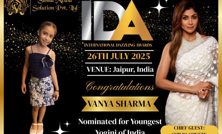 । वान्या शर्मा को इंटरनेशनल डैज़लिंग अवॉर्ड्स 2025 में यंगेस्ट योगिनी ऑफ इंडिया के लिए नामांकित किया गया है, जो 26 जुलाई 2025 को जयपुर में आयोजित होगा। यह क्षण और भी विशेष हो जाता है क्योंकि यह पुरस्कार स्वयं शिल्पा शेट्टी के हाथों प्रदान किया जाएगा — योग की अनंत परंपरा के प्रतीक स्वरूप, जहाँ एक सितारे से दूसरे सितारे तक विरासत पहुँचती है।