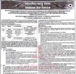 Indian Airforce Jobs: अगर आप भी भारतीय वायुसेना में नौकरी पाना चाहते हैं तो ये आपके लिए सुनहरा मौका है. AFCAT 2025 का नोटिफिकेशन जारी हो गया है. इसके लिए 10 नवंबर 2025 तक आवेदन कर दें, वर्ना तारीख निकलने के बाद आप अप्लाई नहीं कर पाएंगे।