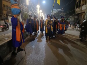 नगर भ्रमण: यह शोभायात्रा पंजाबी कॉलोनी से शुरू होकर शाहगंज चौराहा, चौक, सब्जी मंडी और मेडिकल कॉलेज चौराहा होते हुए पुनः गुरुद्वारे पर संपन्न हुई।