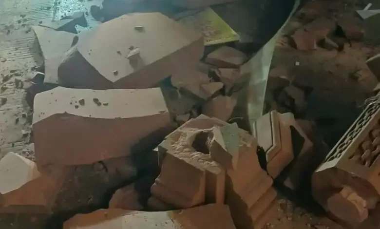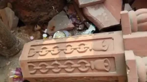 वाराणसी : चौक थाना क्षेत्र में हादसा, डीसीएम की टक्कर से टूटा चन्द्रघंटा देवी मंदिर का मुख्य द्वार, चालक हिरासत में।